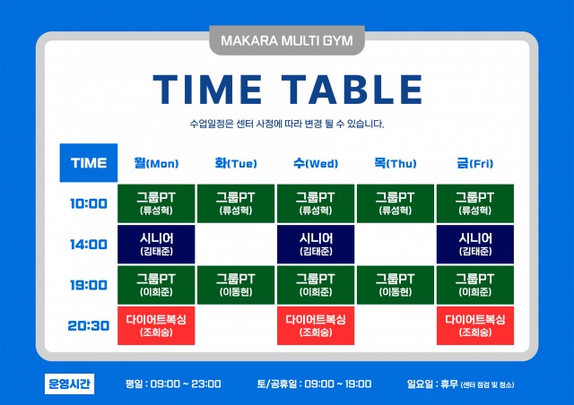 마카라 멀티 짐 그룹수업 시간표 (25년11월1일~)